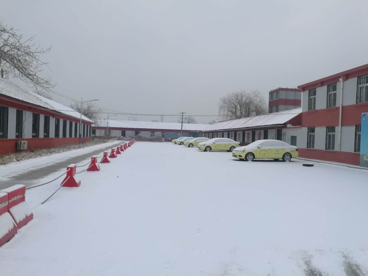 2018年第一場雪,在夜里紛紛揚(yáng)揚(yáng)地下了一夜。第二天起來銀裝素裹,整個駕校都披上了雪衣。