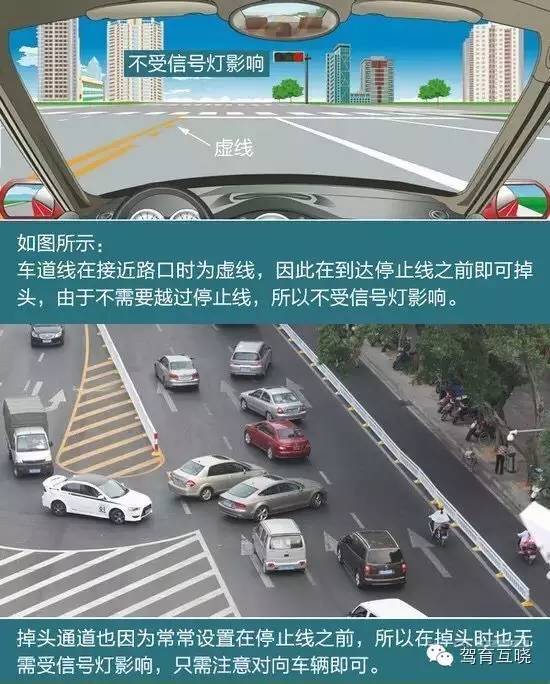 ▲如果是一虛一實(shí),靠近自己的是虛線,則可以掉頭;靠近自己的是實(shí)線,則不可調(diào)頭。